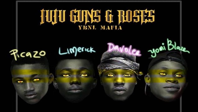Here is the lyrics to a collaboration from YBNL new signees, Picazo, Yomi Blaze, Davolee, Limerick a.k.a (YBNL Mafia), titled “Juju, Guns & Roses”.