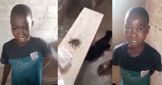 A viral video has captured the moment a 10-year-old boy was caught in an uncompleted building while trying to smoke marijuana commonly known as weed.