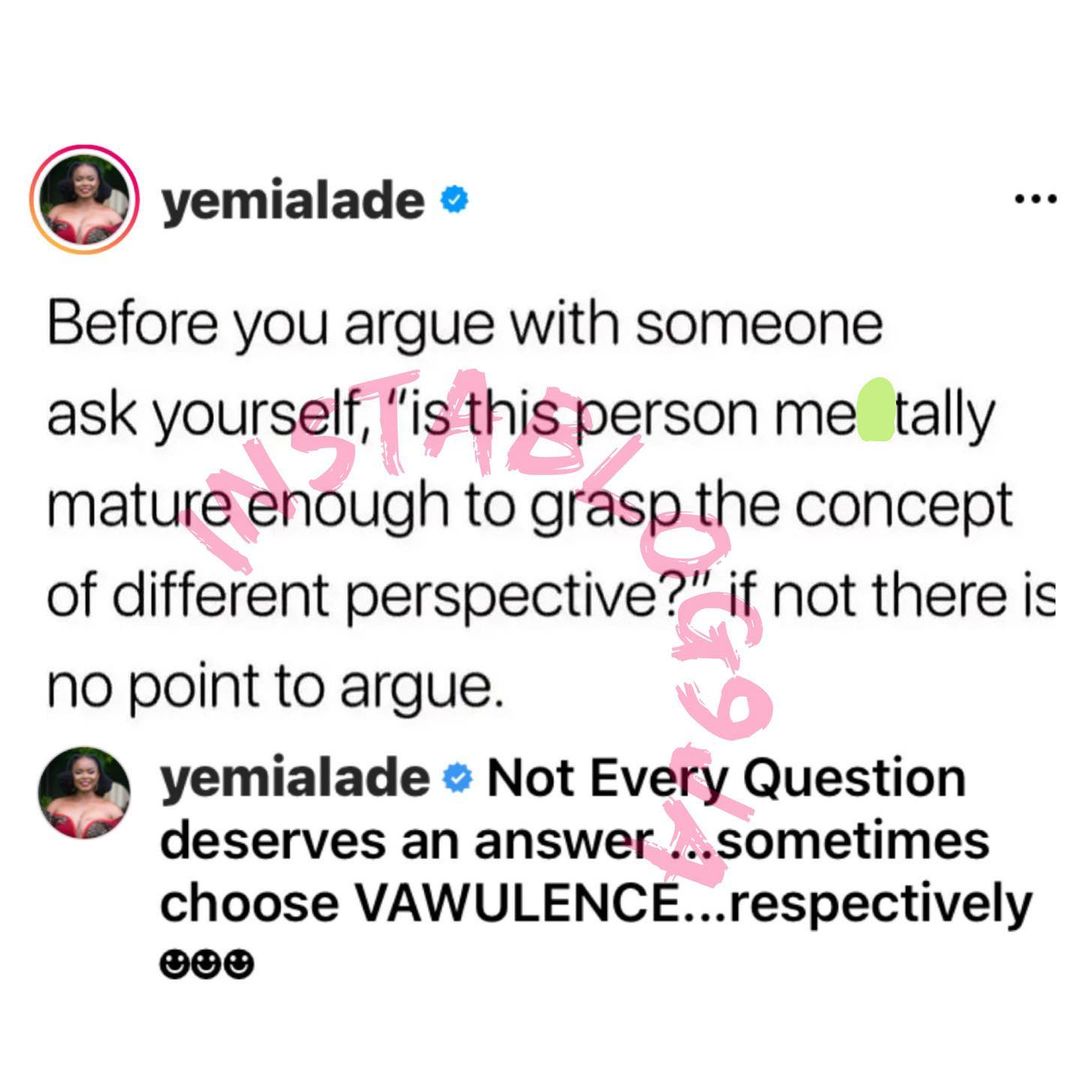 Yemi Alade has now responded to him in a post she shared on her Instagram page. Although she didn’t mention his name, it is evident that she was referring to him in the post she has now deleted.