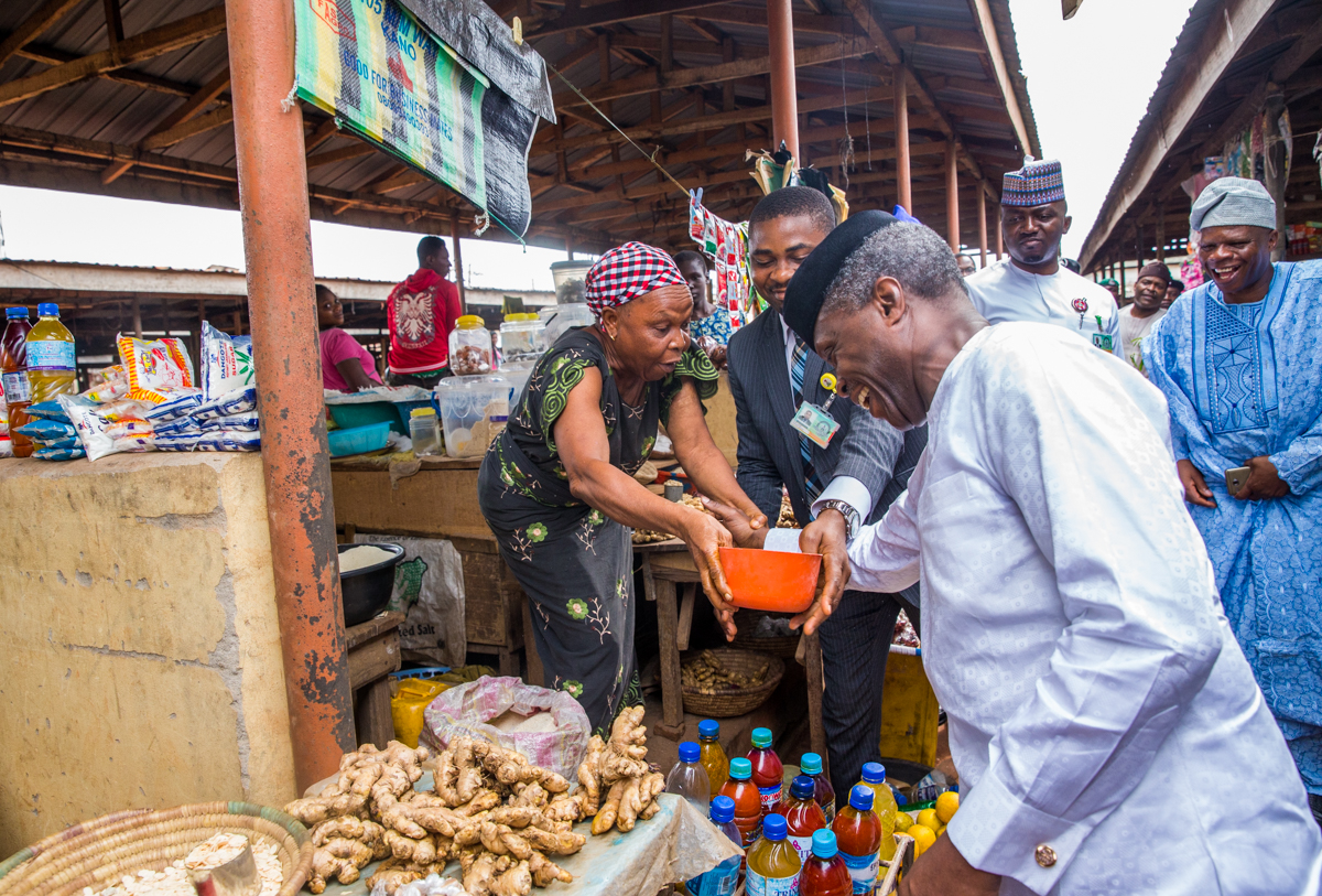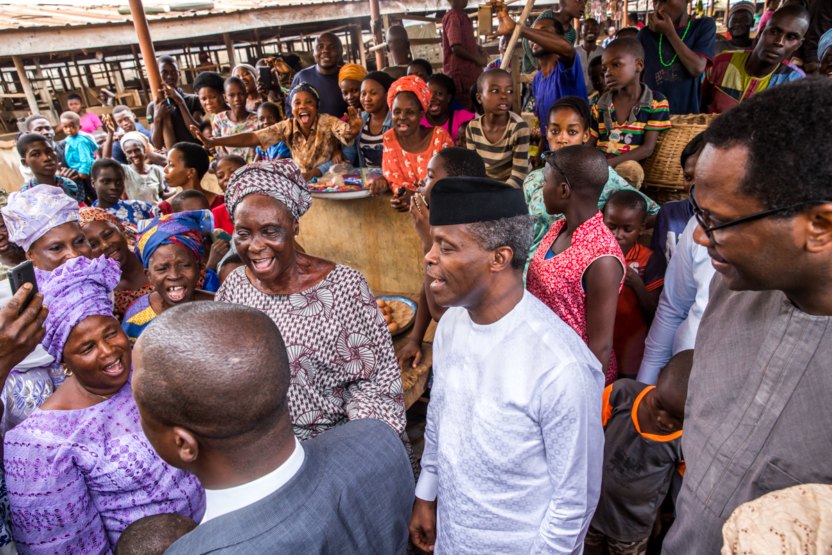 Vice President Yemi Osinbajo made a surprise stop at Ikenne market in Ogun state after attending the 75th birthday event of Reverend Adebajo in the state.