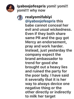 “NOW UNA DON SEE WHAT AM TALKING ABOUT. Why lies and pull her down when @realmercyaigbe is getting endorsement and should enjoy her shine.
