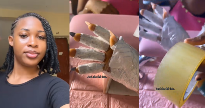 In a video posted online, the lady @ahbi_special talked about how scared she was about exposing her nails to a UV lamp for an extended period to dry the acrylic paint.
