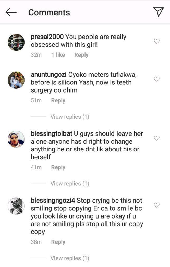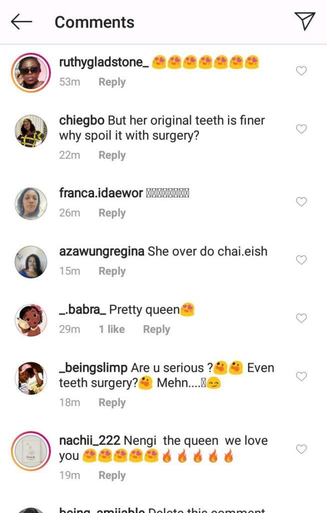 Popular reality star, Nengi Rebecca Hampson has once again become the topic of discussion after an old photo surfaced and folks are claiming she possibly had dental surgery.