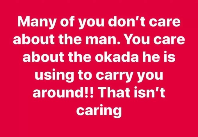 As the ban enters Day 4, the Nigerian musician stated that some Nigerian are more worried about the services of the Okada riders and not their general welfare.