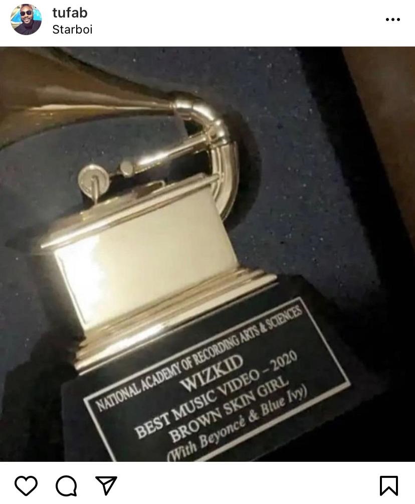 It can be recalled that the Grammy Award winner took to his Insta-stories moments ago to flaunt his trophy. However, Jada has alleged that Wizki’s friend, Dr. Fab unboxed and shared photos of it on social media even before it got to the winner.