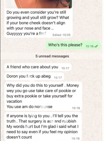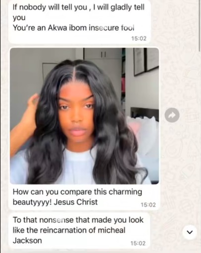 She will go on to share a video of her WhatsApp conversations, where strangers insulted her more than her family members, according to her. From the video one could read the replies she got from her contacts; screenshots below:
