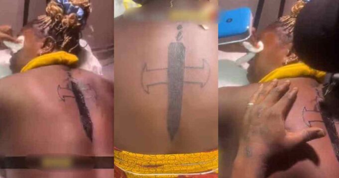 Her friend was captured on camera laying on her back in agony while receiving a fresh tattoo, as seen in the video. But the tattoo pattern, which looked like a sword, was a lot like a painting done by a toddler.