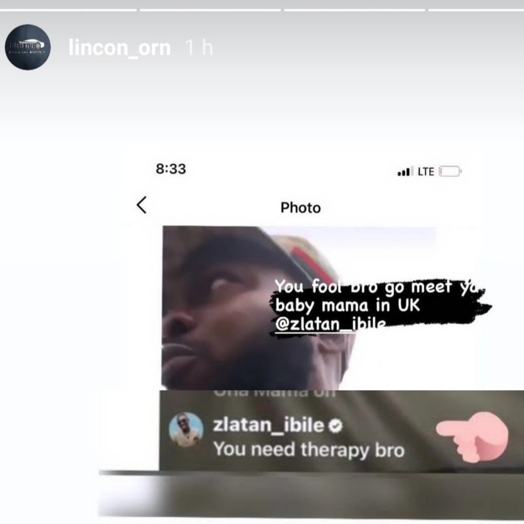 Lincon then took to his Inst-stories to share a screenshot of Zlatan’s comment and tagged him a fool.