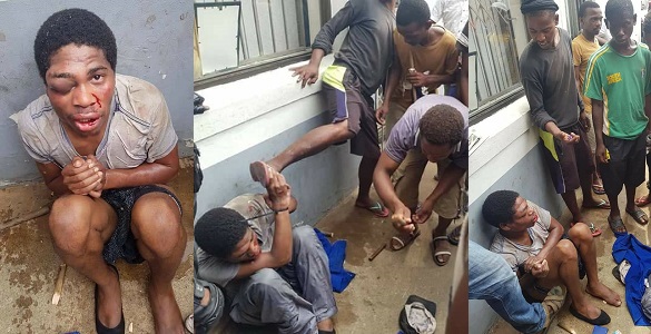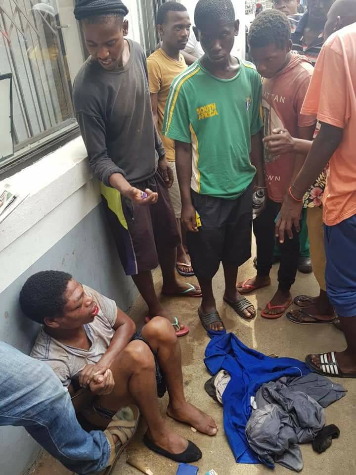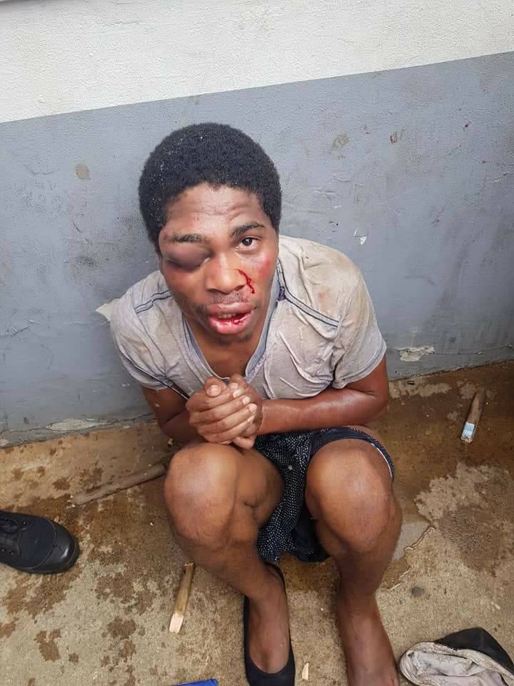 Onlookers managed to apprehend one of the men while his accomplices fled in their getaway vehicle. The mob demanded that the suspect hand over the bank card and when he informed them that it was not in his possession they began to assault him.