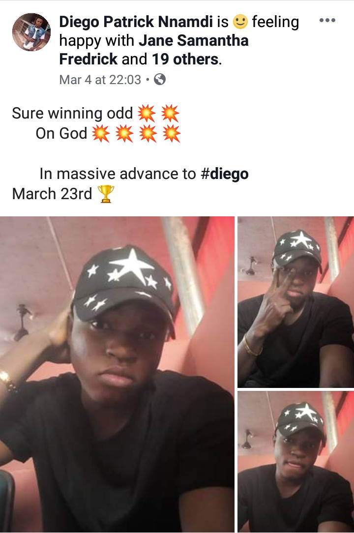 Diego Patrick Nnamdi, whose birthday is on March 23, wished himself a happy birthday in advance on Facebook.