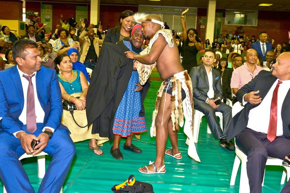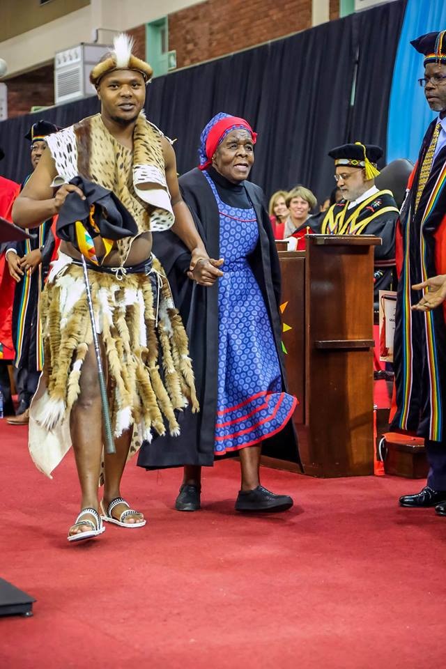 The Bachelor of Law graduate identified as Njabulo Ntombela changed into his Zulu traditional dress and wore his graduation gown on his 89 year old great grandmother, Nomkikilizo Ntombela.