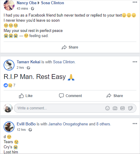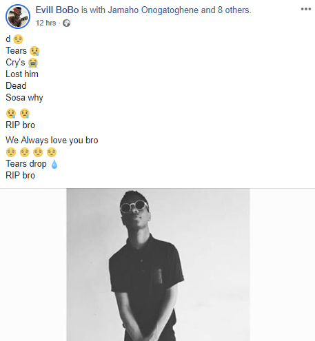 Social media users allege that his mother and brothers have been declared wanted for his murder and are now on the run. Friends of the deceased have taken to Facebook to mourn and pay tribute to him.