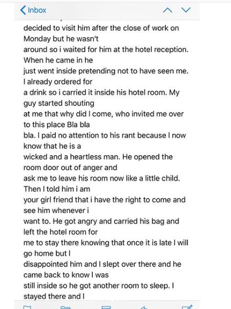 An unnamed young Nigerian lady has gathered herself to recount the 4-month hotel romance she had with a young man who, while staying in the hotel, lied to her that he has issues in the United States, but is working on it, which is why he’s staying in the hotel.