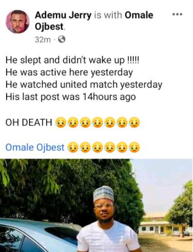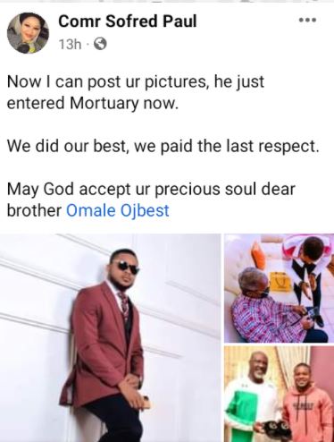 “Now I can post your pictures, he just entered mortuary now. We did our best, we paid the last respect. May God accept your precious soul dear brother Omale Ojbest,” she wrote.