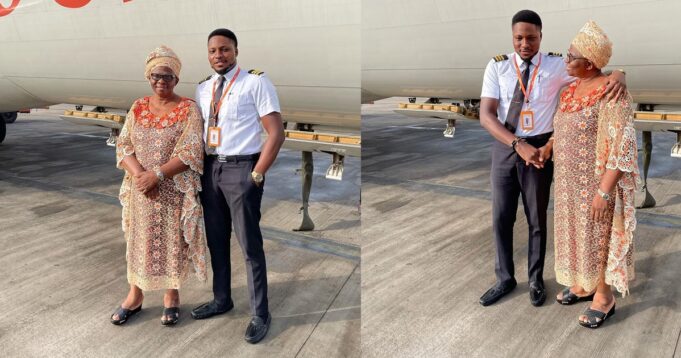 A Nigerian Airline Pilot identified as Kunmi Toyinbo has taken to his social media page to document a proud moment in his life as he flew his mother to her destination for the first time.