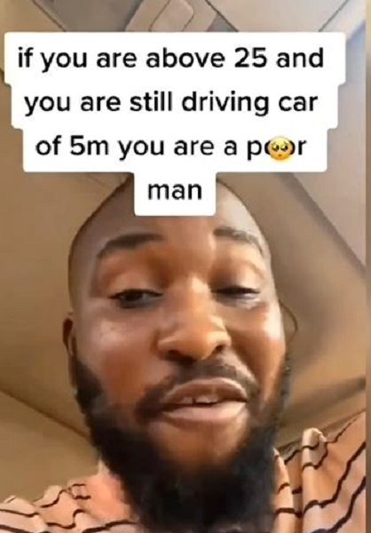 The man made this controversial assertion in a viral video, stating that any man above 25 years old with a car worth 5 million naira should not feel fulfilled or accomplished.