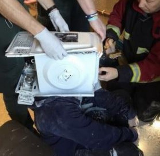 A YouTube prank went horrifically wrong when the prankster accidentally ‘cemented’ his head inside a microwave and emergency crews had to be called to rescue him.